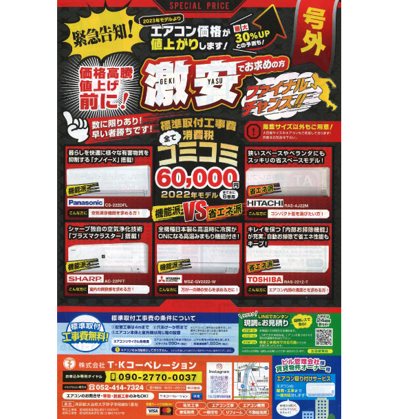 - エアコン工事や電気工事だけでなく、事業内容にある項目は勿論のこと、